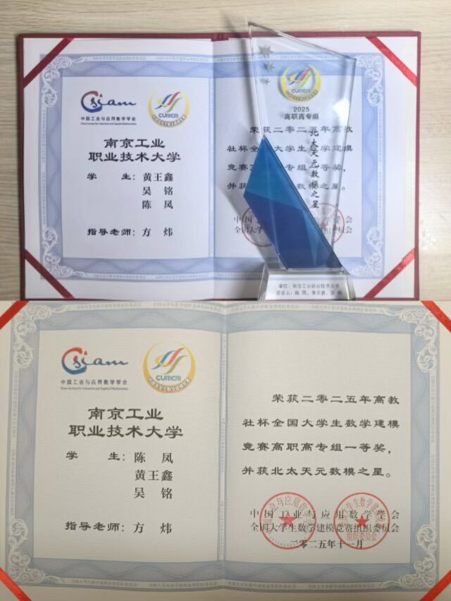 我校在2025年全国大学生数学建模竞赛高职(含职业本科)高专组获“北太天元数模之星”,这是我校继去年获“高教社杯”后又一殊荣实现了我校在该项赛事上的大满贯。